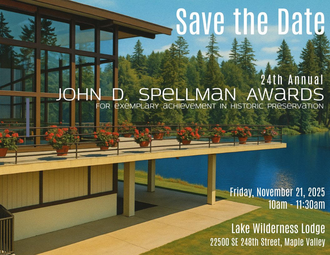 We are thrilled to celebrate the contributions of Dr. Elizabeth Stewart at the 2025 John D Spellman Awards in Historic Preservation! Join us at the beautiful Lake Wilderness Lodge in Maple Valley for the 2025 John D. Spellman Awards, an annual celebration honoring exceptional contributions to historic preservation and heritage work throughout King County. This year’s ceremony recognizes individuals and organizations whose dedication, leadership, and creative vision help preserve the stories and places that shape our shared history. Guests will gather for an inspiring program, meaningful acknowledgments, and a chance to connect with preservation partners from across the region as we celebrate this year’s distinguished awardees.